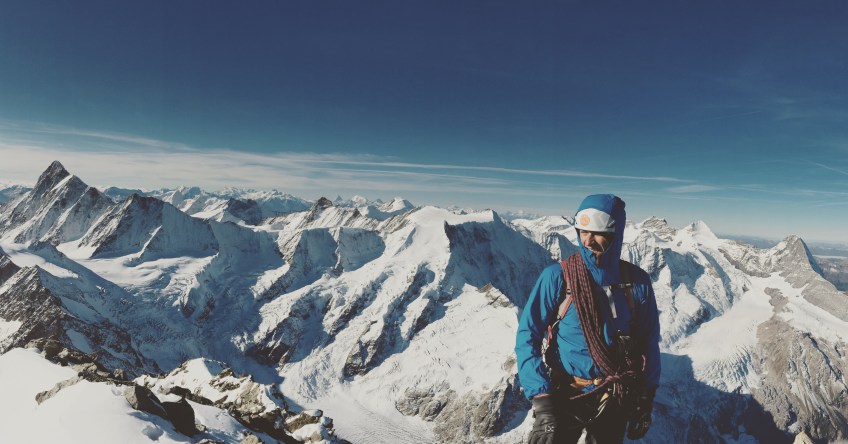 Published septembre 29, 2015 at 4095 × 2145 in Schreckhorn, Oberland, Arête Sud Ouest Nils au sommet avec un tour d’horizon époustouflant.