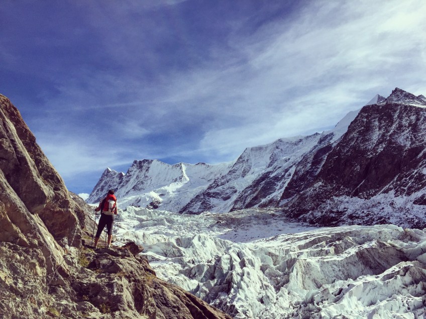 Published septembre 29, 2015 at 3264 × 2447 in Schreckhorn, Oberland, Arête Sud Ouest J1, l’approche donne le ton et apporte son dépaysement