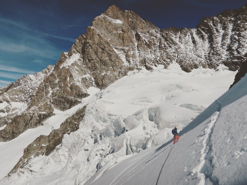 Published septembre 29, 2015 at 4000 × 2999 in Schreckhorn, Oberland, Arête Sud Ouest Un dernier coup d’oeil sur la pyramide du Schrechorn