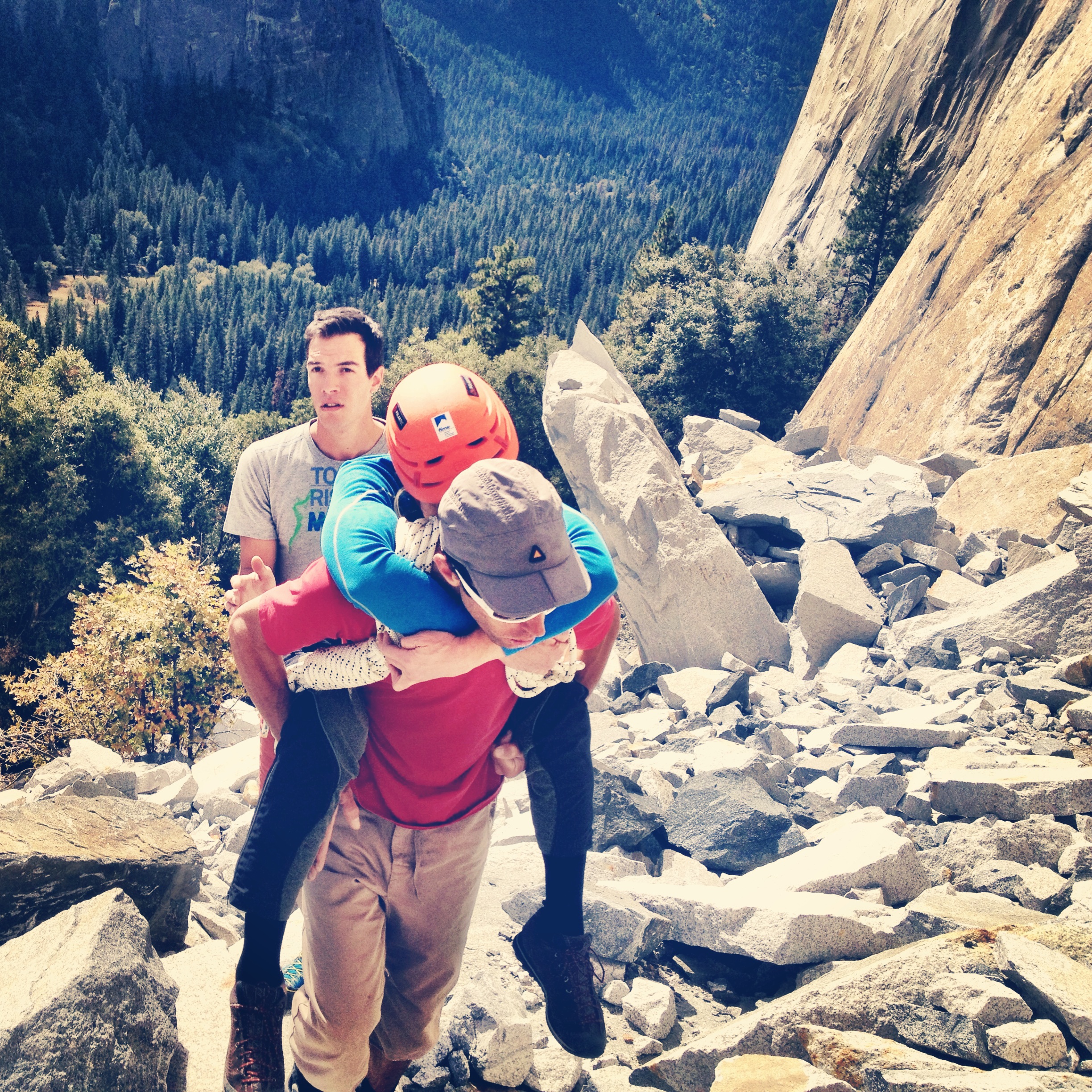 Dépose minute au pied d’El Cap. C’est Marion qui attaque avec le portage de Vanessa