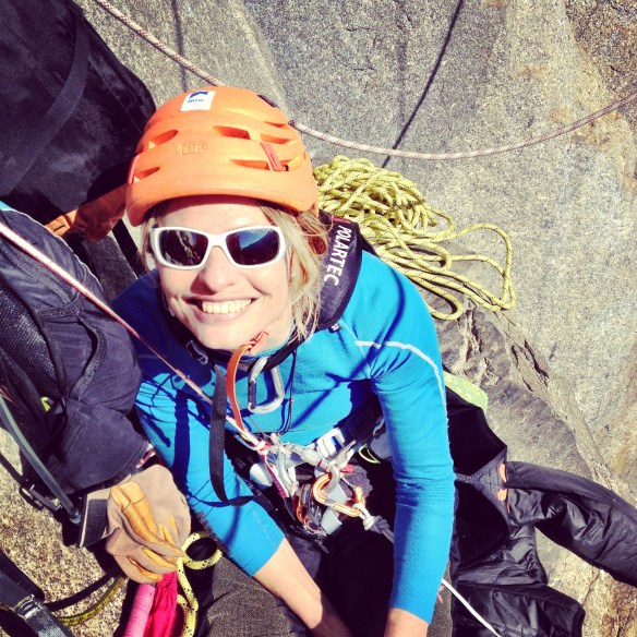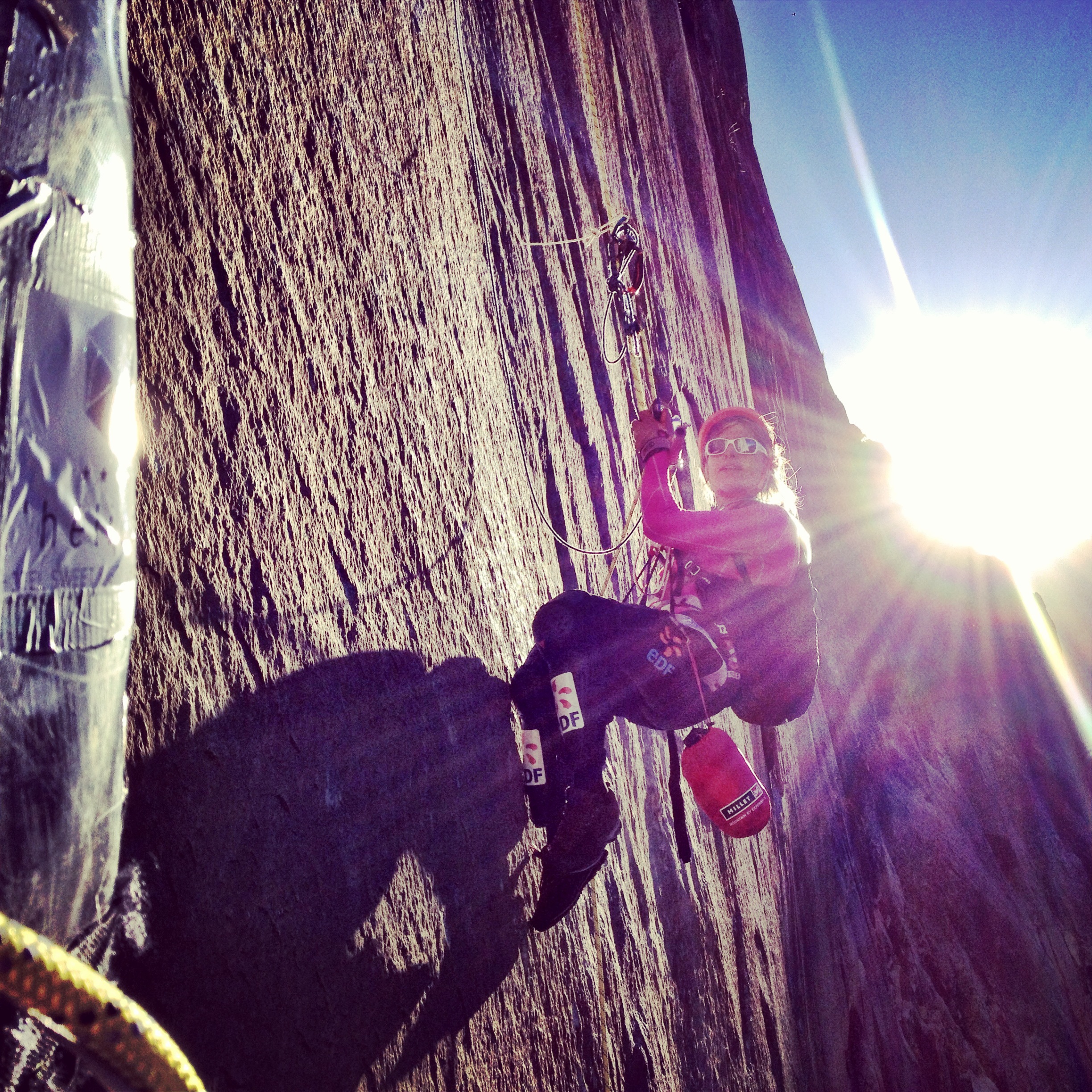 Vanessa quitte le portaledge et file vers la longueur suivante. Une de plus une de moins…