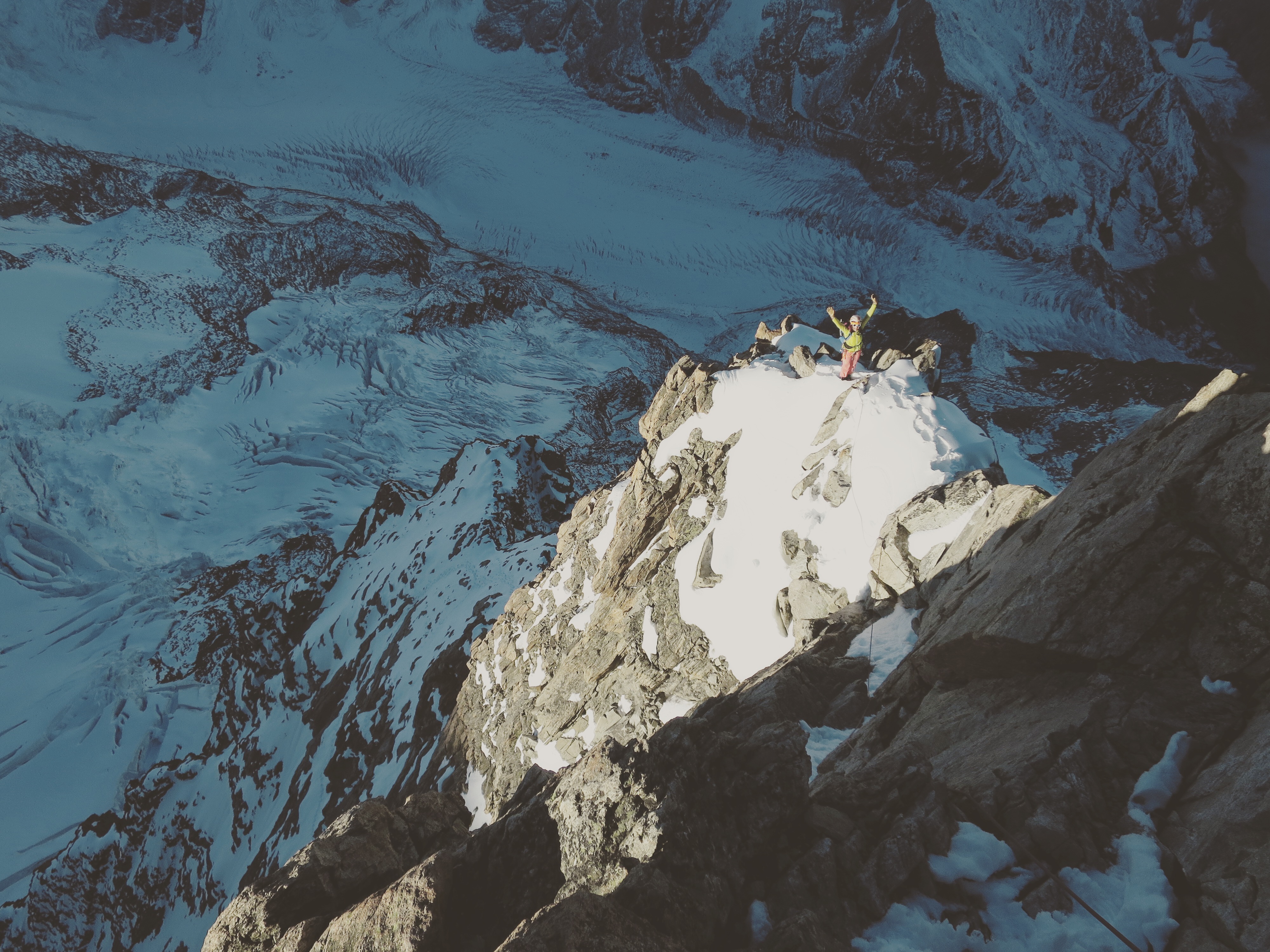 - La rimaye est passée, plus qu’à remonter le couloir de neige pour rejoindre ensuite l’arête et son rocher bien compact.