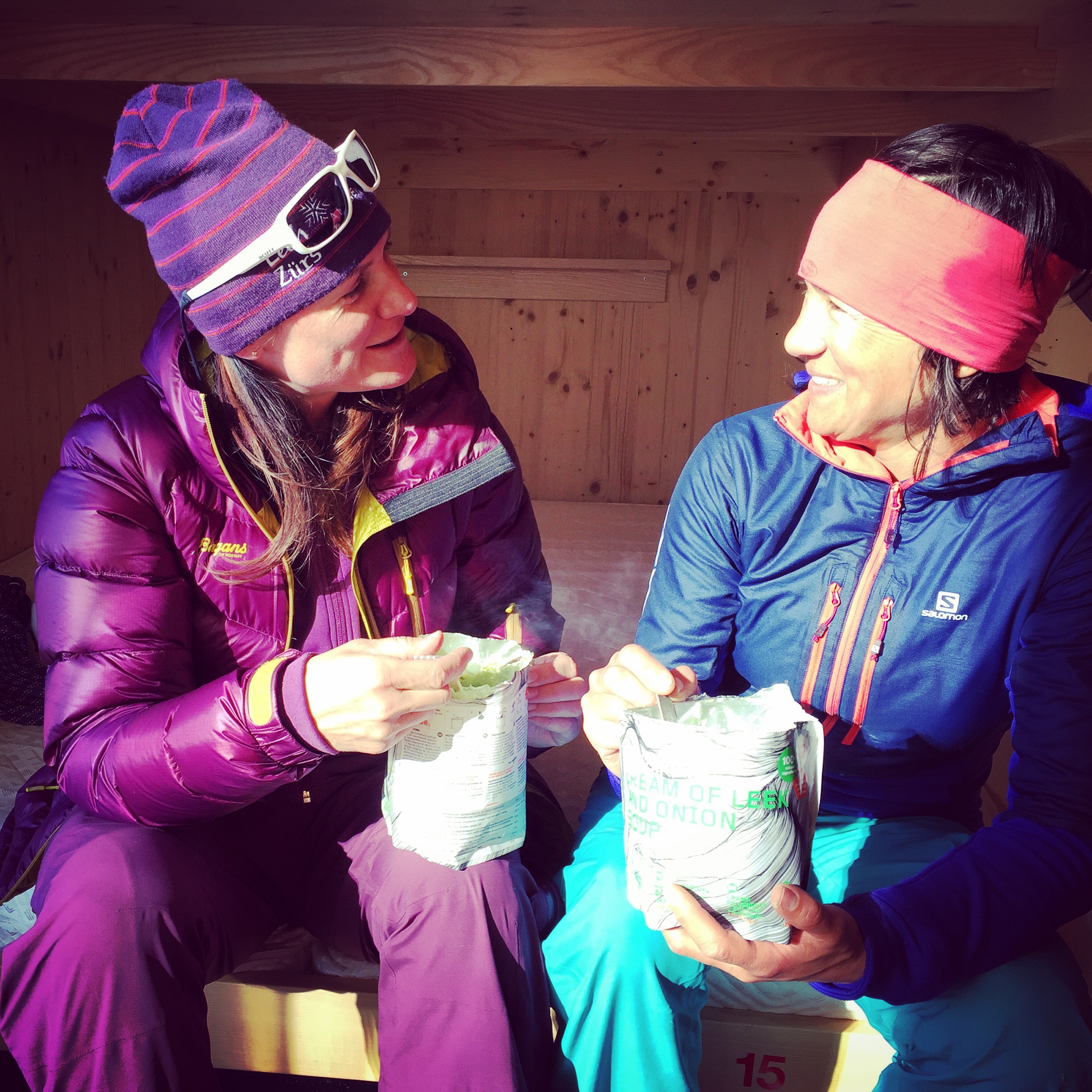 - Bon petit repas dans l’agréable refuge d’hiver. Et ça rigole! ©Giulia Monego